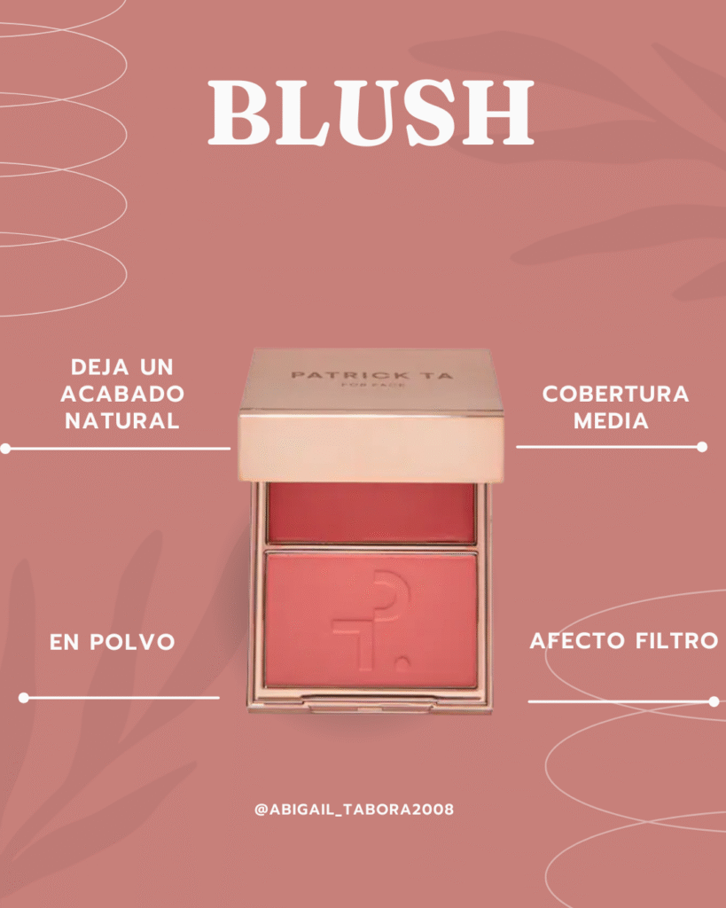BLUSH PATRICK TA , PERFECTA PIGMENTACION , ACABADO NATURAL , DISPONIBLE EN TODOS SUS TONOS.